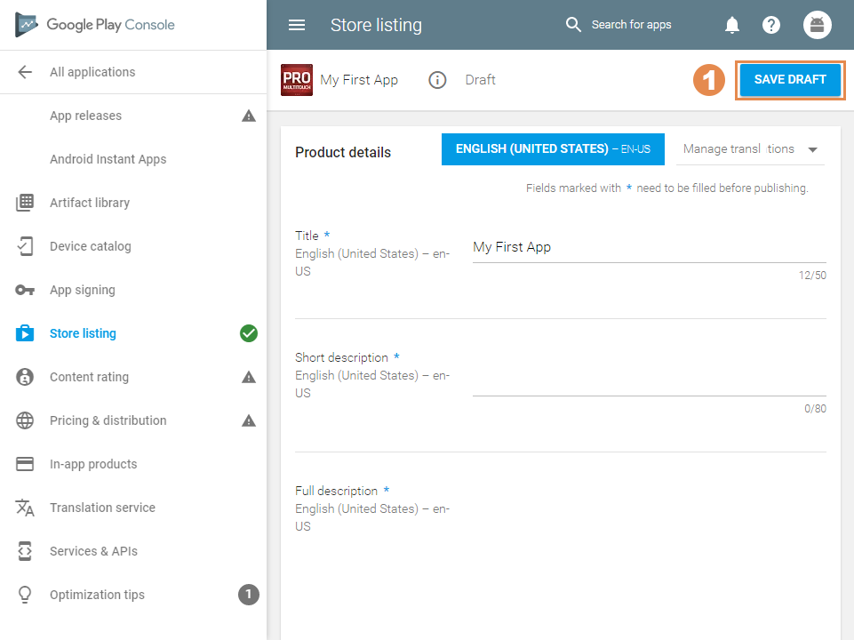 2.1. Click Store listing in the left-side menu